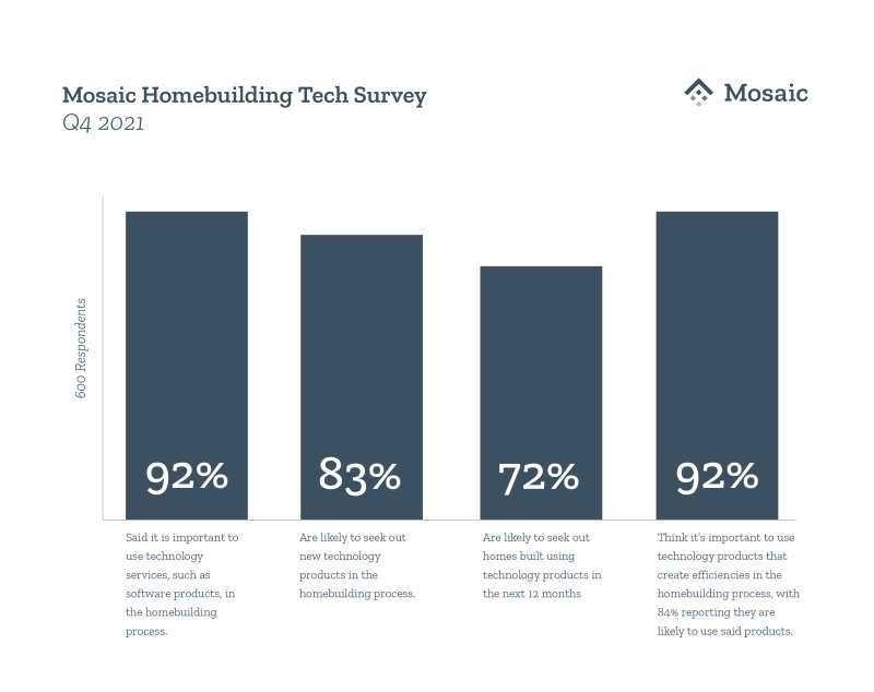 New data from Phoenix-based Mosaic show encouraging signs builders are embracing technology to a greater degree as they deal with today's raft of construction and supply chain challenges.