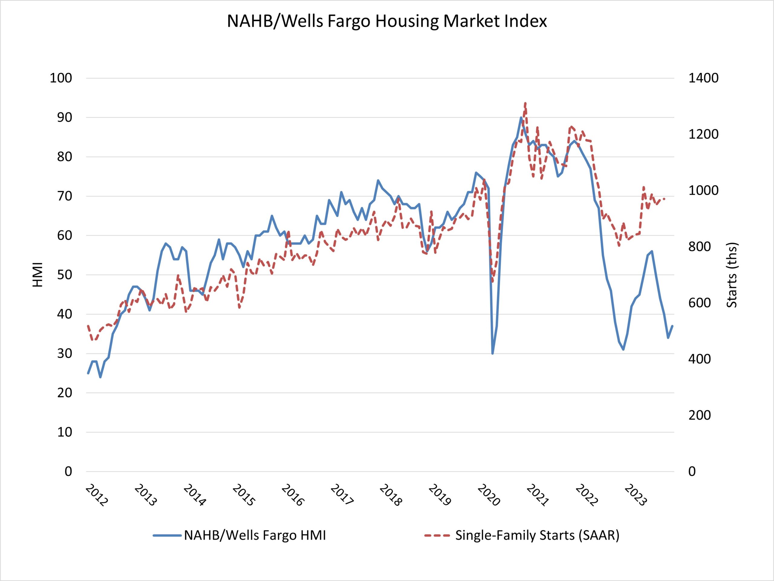 The most recent homebuilder sentiment reading from the National Association of Home Builders/Wells Fargo Housing Market Index rose off its 2023 lows on the strength of the Federal Reserve pivot to level or lower its funds rate trajectory.