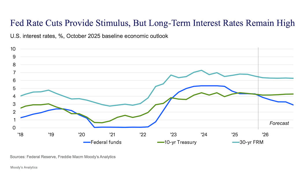 deRitis expects the Federal Reserve to continue cutting rates through 2026, but he cautions against pinning hopes on a swift reset lower. He anticipates that the 30-year fixed-rate will decrease modestly and remain at or slightly above 6.0% through 2026.