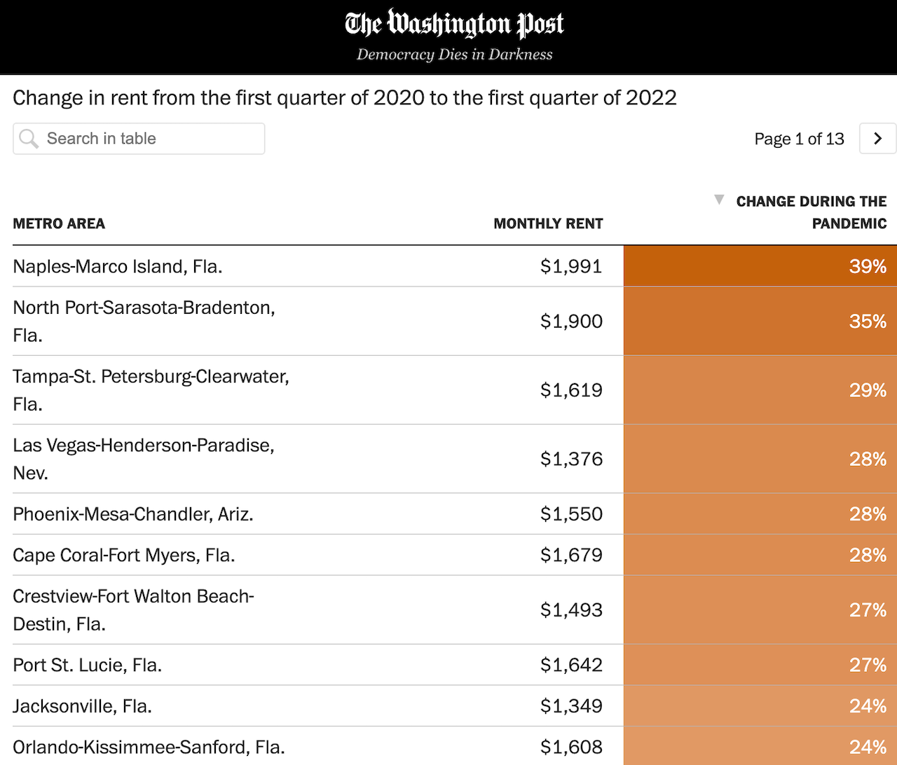 Nationally, rents rose a record 11.3 percent last year, according to real estate research firm CoStar Group. That fast pace of growth remained elevated in the first months of 2022, as many parts of the country continued to notch double-digit jumps in rent prices.