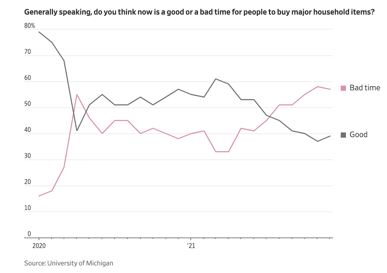 A household, however, enjoys far less optionality in its key buckets of goods and services – usually, spending more on some essentials means having less to spend on other, discretionary expenses. Households add up to a third of GDP, and they haven't gotten the memo that a strong economy, a sizzling jobs market, a pivot to employee power, and a limitless blue-sky of career opportunity should buoy them, and drive them willy-nilly into the new home market.