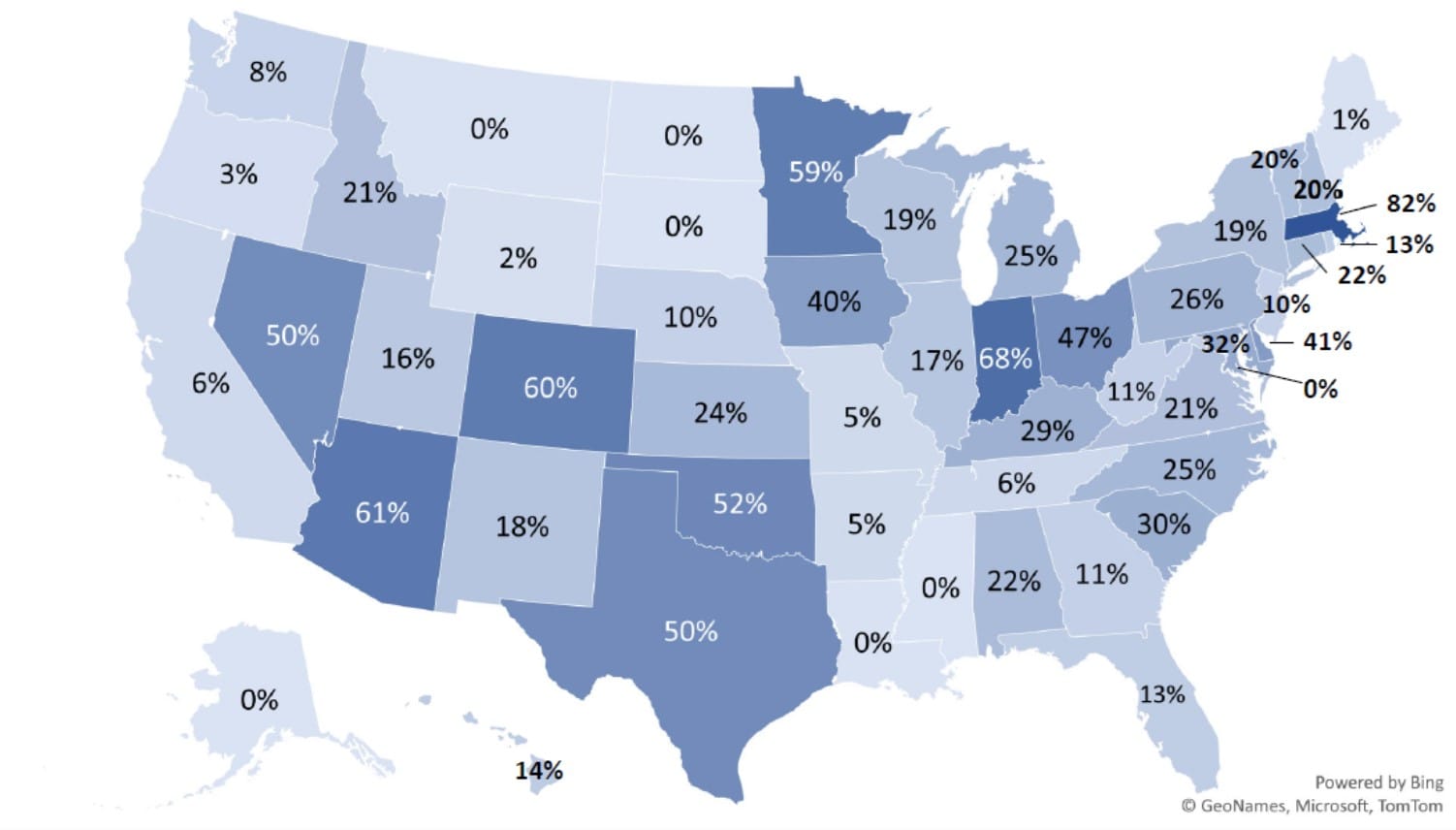 The HERS Index score provides a number, typically between zero and 100, where a lower score means less energy use. In 2022, 27% of all single-family homes built in the U.S. received a HERS Index Score. Massachusetts was the leading state, with 82% of its new homes being HERS-rated. A record-breaking eight states had 50% or more of their new homes rated.
