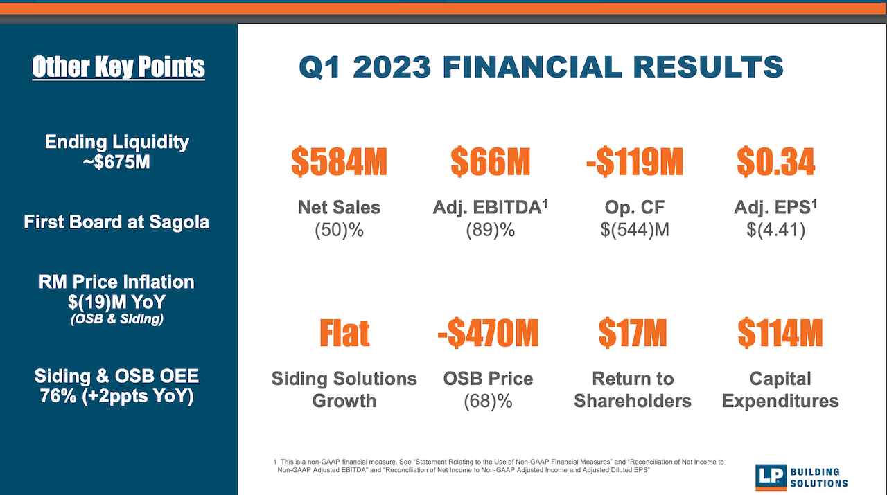 Big challenges to LP's core commodities business – pricing on OSB and stalled demand on the siding front – reflect themselves in the enterprise's 1st-quarter gut-it-out mixed-signals financial and operational performance: